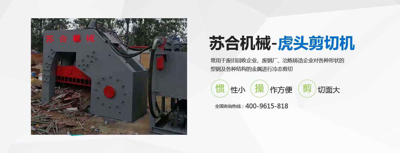 虎頭剪具有體積小、重量輕、慣性小、噪音低、動(dòng)作平穩(wěn)、操作方便、靈活、剪切斷面大、剪刀口調(diào)整方便等優(yōu)點(diǎn),操作使用安全。常用于廢舊回收企業(yè)、廢鋼廠、冶煉鑄造企業(yè)對(duì)各種形狀的型鋼及各種結(jié)構(gòu)的金屬進(jìn)行冷態(tài)剪切。剪切機(jī)的用途就是用來(lái)剪切定尺、切頭、切尾、切邊、切試樣及切除軋件的局部缺陷等。 滑縣蘇合機(jī)械制造有限公司性能穩(wěn)定,操作簡(jiǎn)單。歡迎來(lái)電咨詢 <了解更多>